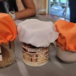 The sewing bee brought together keen sewing whizzes of all ages to use donated fabric off cuts to make vegetable bags, fabric food covers and “handy”* fabric bags.