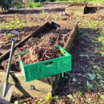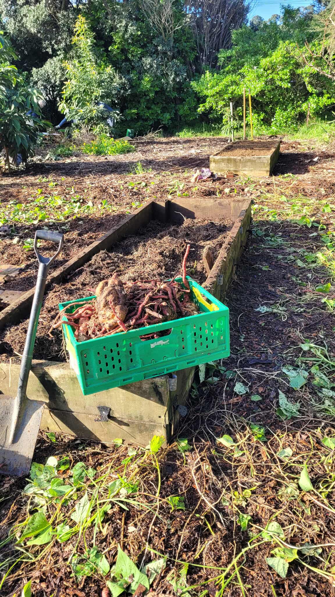 We harvested all the kumara, prepared the bed & planted our peach seeds, expanded the mulched area and did a lot of weeding and cardboard stripping.