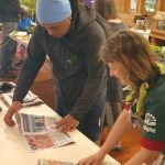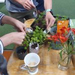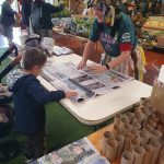 It was more than a ‘seedling swap’; it was a plant, plant containers, information and seed swap. Tables were set up to show people how to make newspaper plant pots for seeds, newspaper bags to use as Food Scraps bin liners, and how to make a potent Guava Moth trap. Plus, outside there was a load of horse manure to shovel into sacks and take home for your garden. The Food Fairy was there to help, patiently showing children how to fold newspaper into bin liners and hats! Lots of people brought along plants and surplus pots and were happy to see them being taken and used by others.