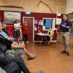 Fraser’s informative talk and friendly manner set a convivial tone for the evening. Next up, was an “Icebreaker”. Jane asked everyone to figure out who were the most recent arrivals and the longest residents. People jumped up and met other locals, jostling to find their place on the imaginary timeline Jane had marked out. It was fun hearing how long people had lived in the area, with residency ranging from six months to 50 plus years.