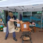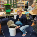 Handyman Alan Worman from Māngere East entertained people as he mended chairs, ornaments and knickknacks. Matt Gravestock dealt with IT queries while local librarian Irene Tufuga mended books. The food scraps display was enhanced this time when Māngere Bridge local Alzbeta Bouskova Houghton arrived mid-morning with a large bucket of liquid fertilizer. Alzbeta is the General Manager of the Ecogas Reporoa Organics Processing Facility and came along to show us one of the useful products produced from the food scraps anaerobic digestion process. Auckland’s food scraps are processed and turned into natural gas and this pungent bio-fertiliser concentrate, which is used to fertilize farmland. Plans are underway to provide this fertiliser to community gardens throughout Auckland.