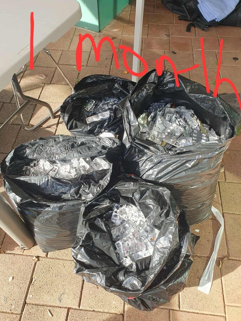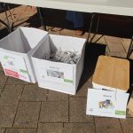 Located outside with the handymen Alan and Rob was a recycling display, reminding people of the recycling hub in the Library which collects blister packs , Colgate oral health and batteries. Check out the large bags full of blister packs- that’s just one month’s worth!