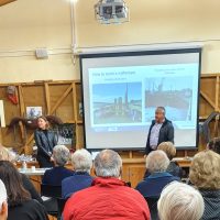 Next, Grace Doherty, Keith Griffin and Aude Salmon gave an informative update on the bridge replacement project, which is costing $38 million. Thoughtful design and artworks will make the new bridge a stunning addition to our community. “Community feedback informed the design process,” said Grace. “and will ensure better access to the harbour for boats and canoes, better lighting, a gentle slope to make it accessible for all users, bench seating and fishing bays located where the water is deeper. Care for the surrounding environment led to several features, including raingardens to clean stormwater before it reaches the harbour and trees and other planting at the entry and exits of the bridge.” Keith explained how cofferdams are being used to construct new concrete piers. “Lots of preparation work is done before the bridge piles are poured. The steel foundation piles are driven 20 metres below the seabed; about the height as a five-storey apartment block.”